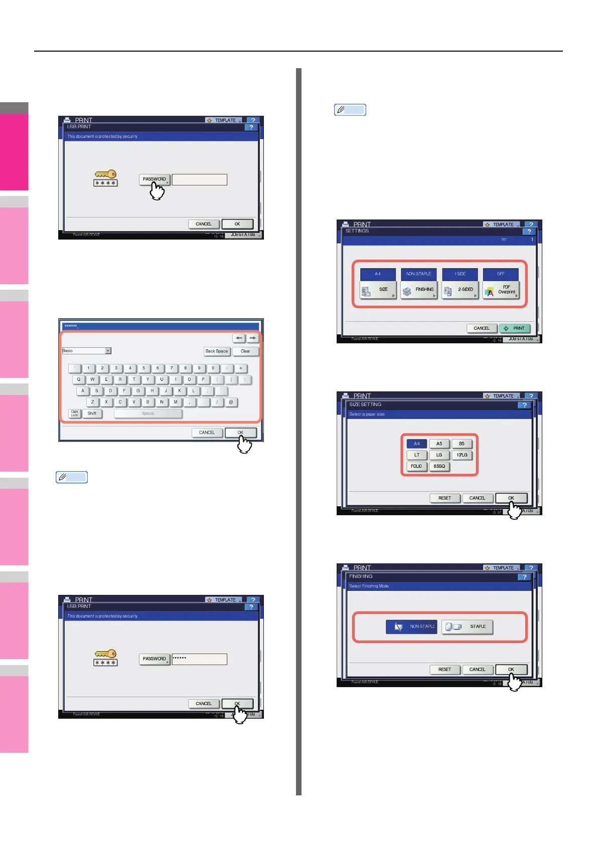 1) Press any of [SIZE], [FINISHING], [2-SIDED] and