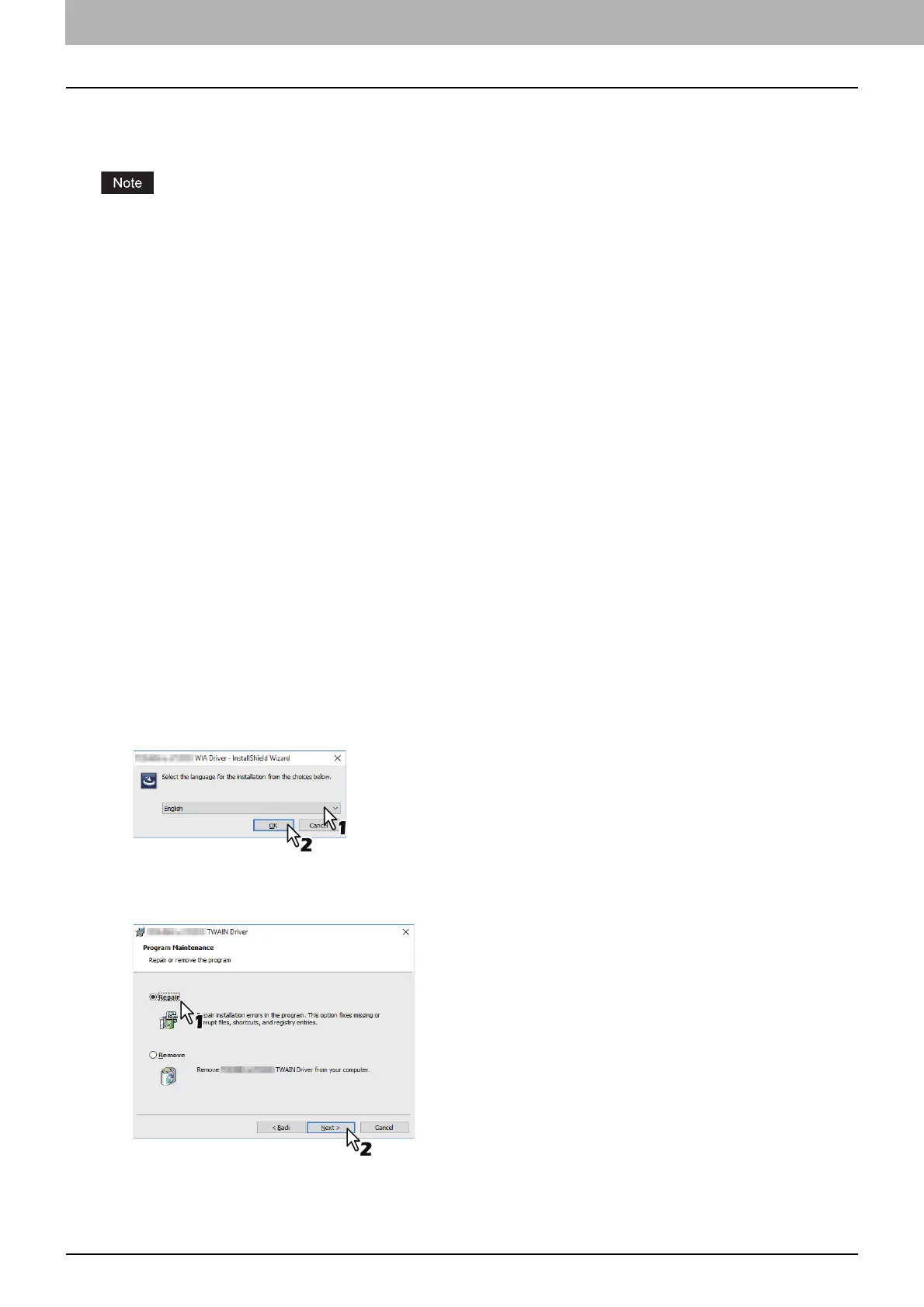 The printer drivers, N/W-Fax driver, and WIA driver cannot be repaired by the set-up program. To repair them,