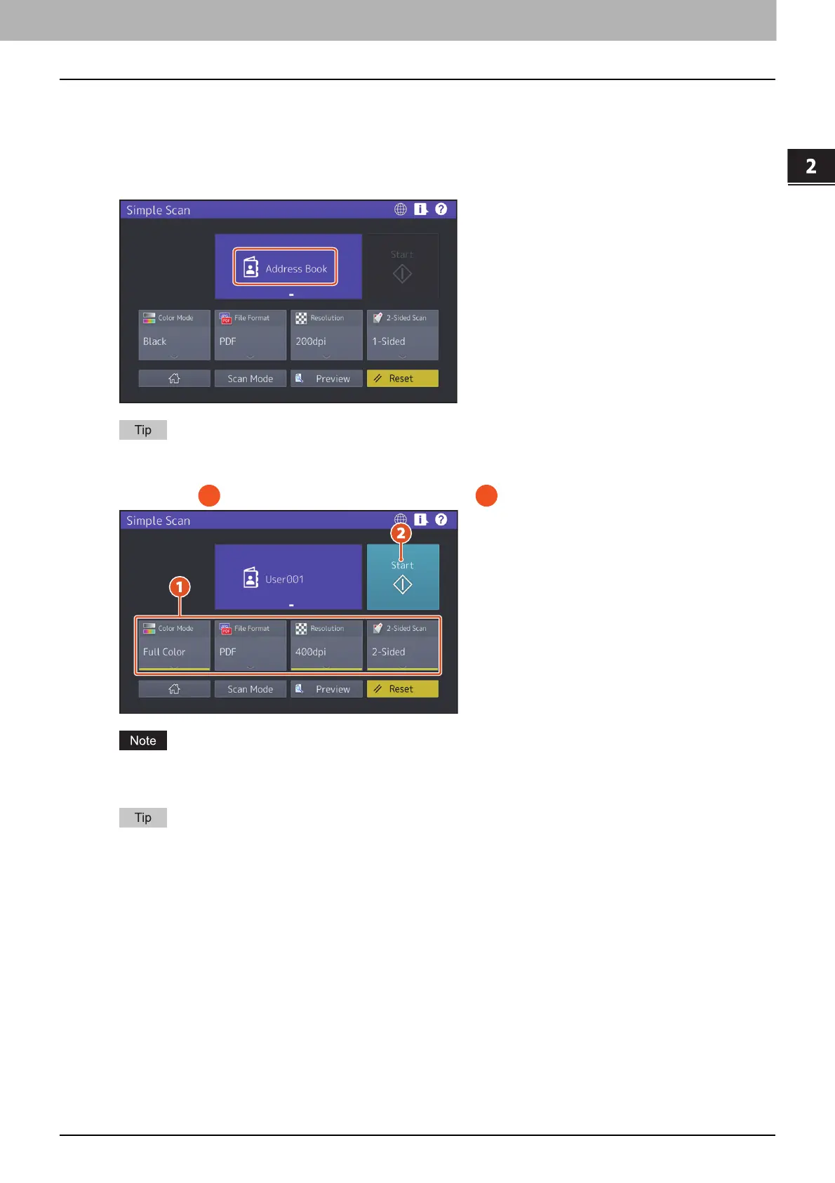 When you press [Address Book], you can select whether to use a registered E-mail address or enter an E-mail