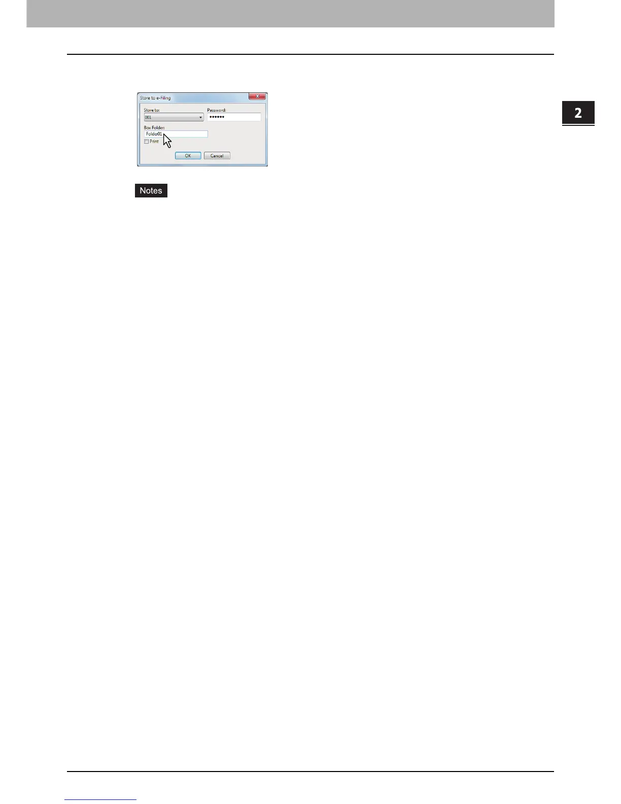 When you specify a folder in which the print job is to be stored in a user box, enter the