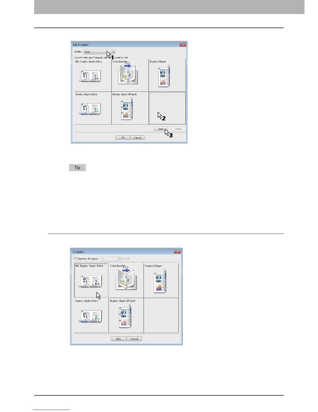 The [Templates] dialog box appears automatically when printing is started.