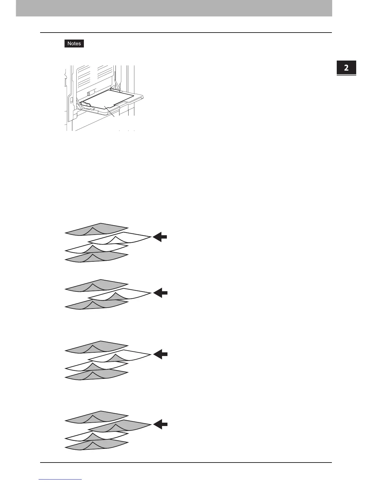 Tab paper must be fed from the bypass tray. Make sure to place it with its tab outside. The shape of the