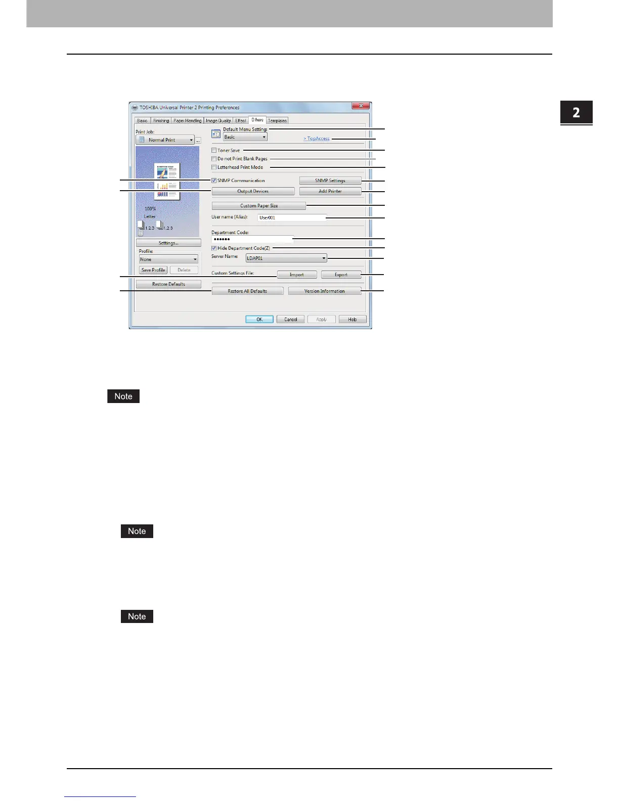 The [Others] tab contains print options such as toner saving, custom paper size and so on.