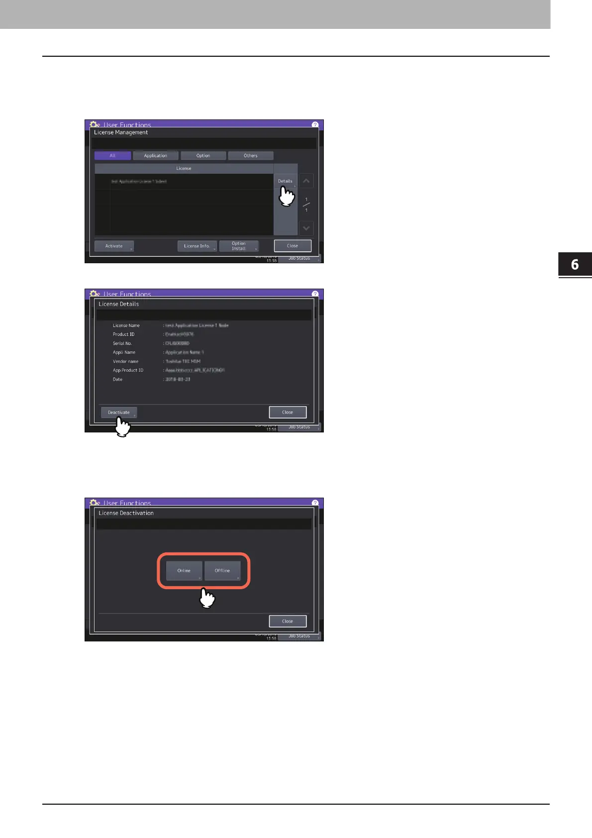 On the License Management screen, press [Details] for the license that you want to deactivate.