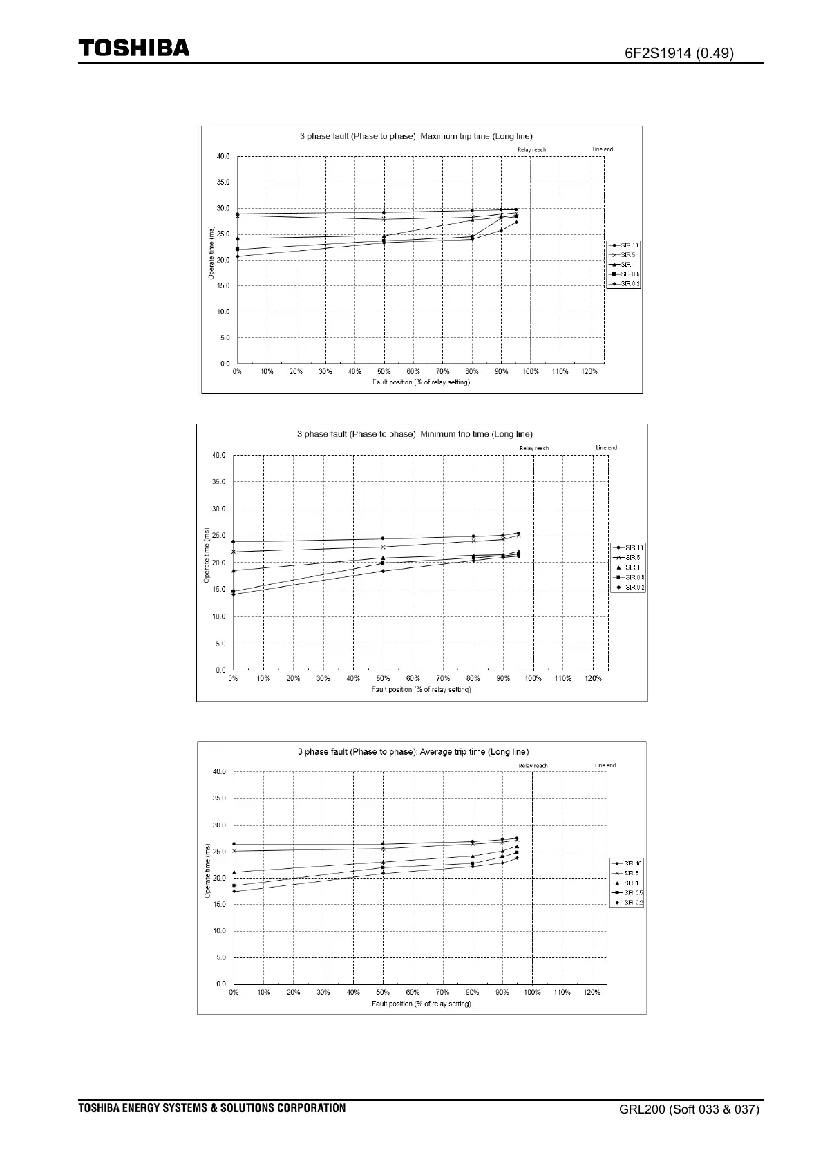 Toshiba GR200 Series - SIR trip time characteristics for three-phase fault (ZS element) [Long line]