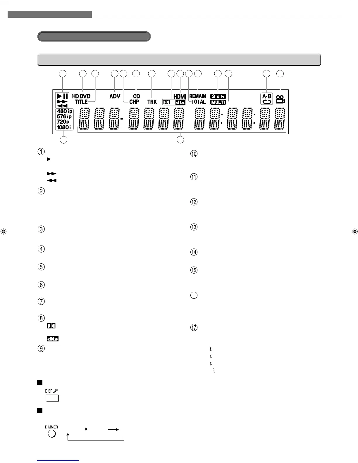 Every time you press DISPLAY button on the remote control, the display changes the contents.