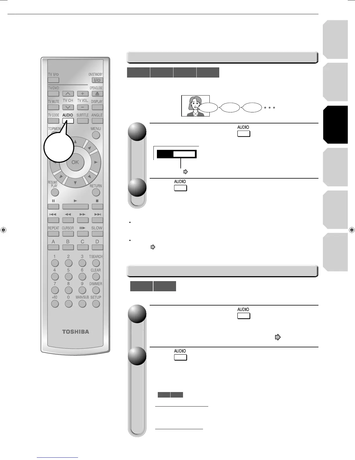 When playing a disc recorded in DVD VR mode, select the sound as follows.