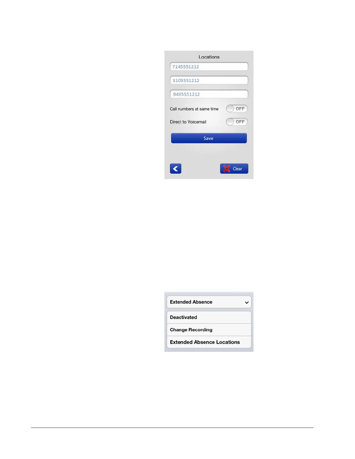 Absence greeting - tap the button to activate/deactivate. Once enabled, users are