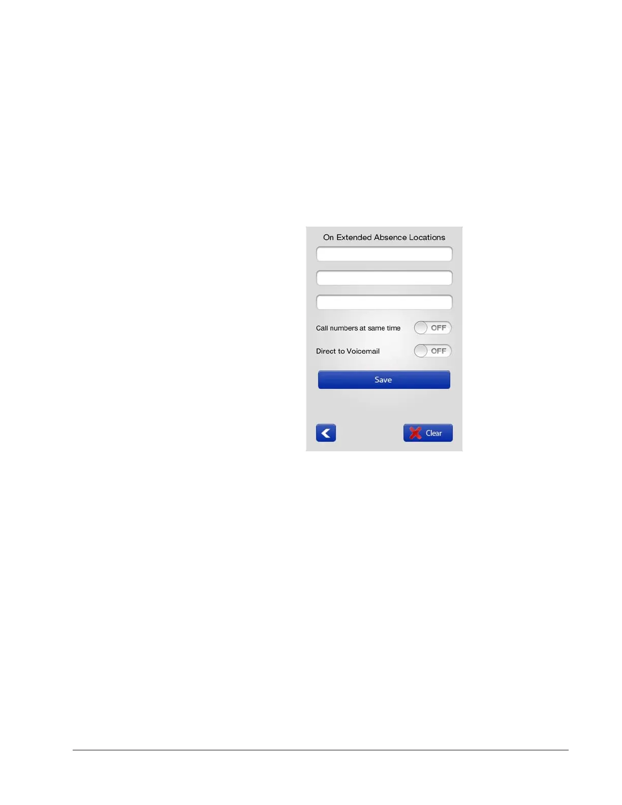 1. Enter the Extended Absence locations (destination telephone numbers.)