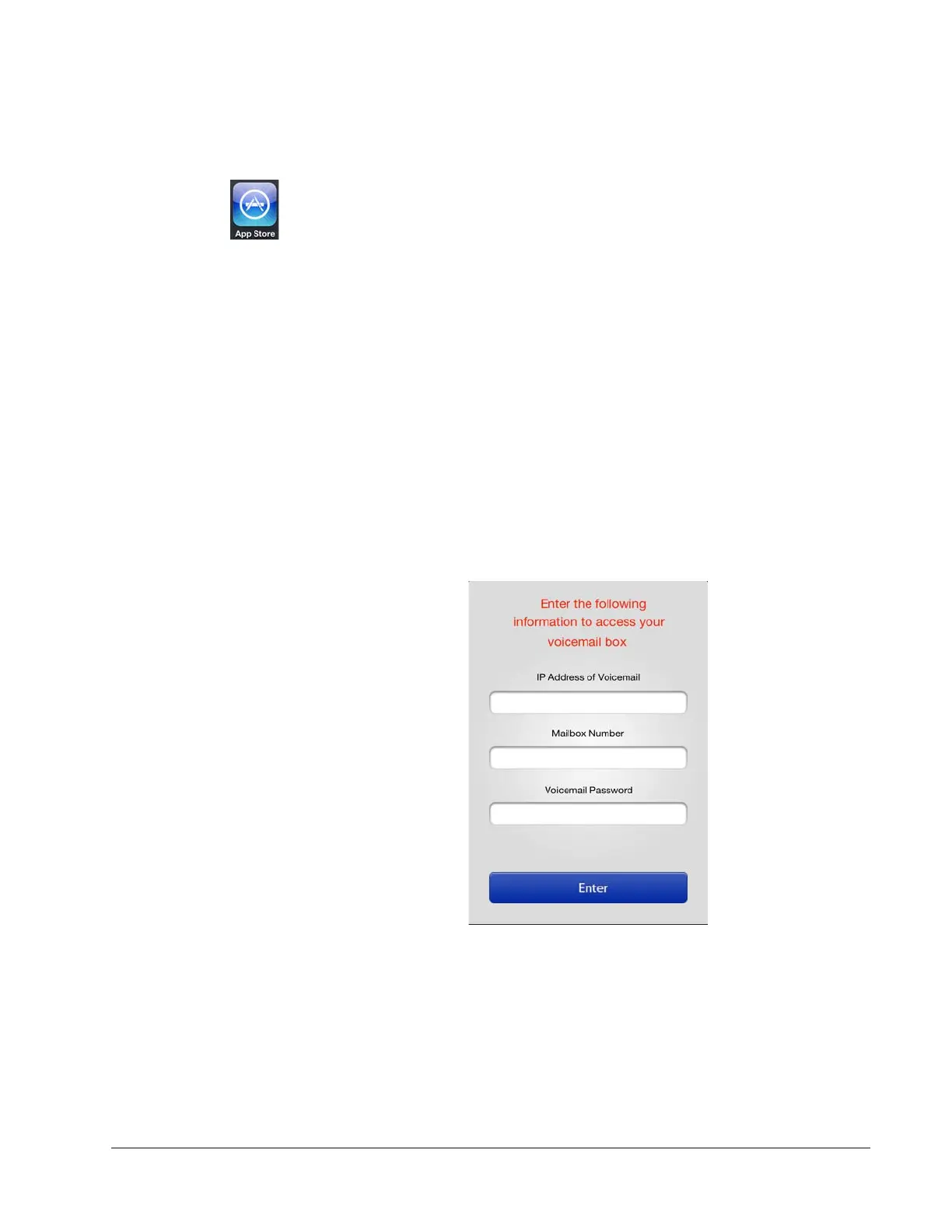 entered. User will first need to obtain the IP address for the voice mail system (see