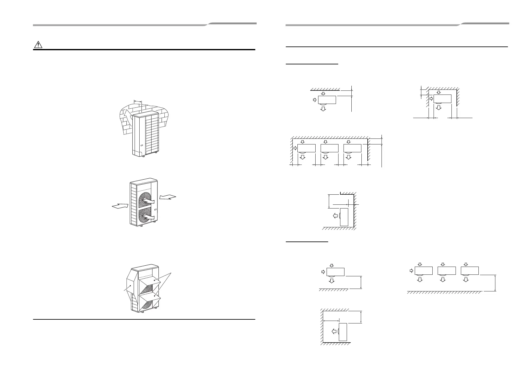 1. Install the outdoor unit in a location where the discharge air is not blocked.