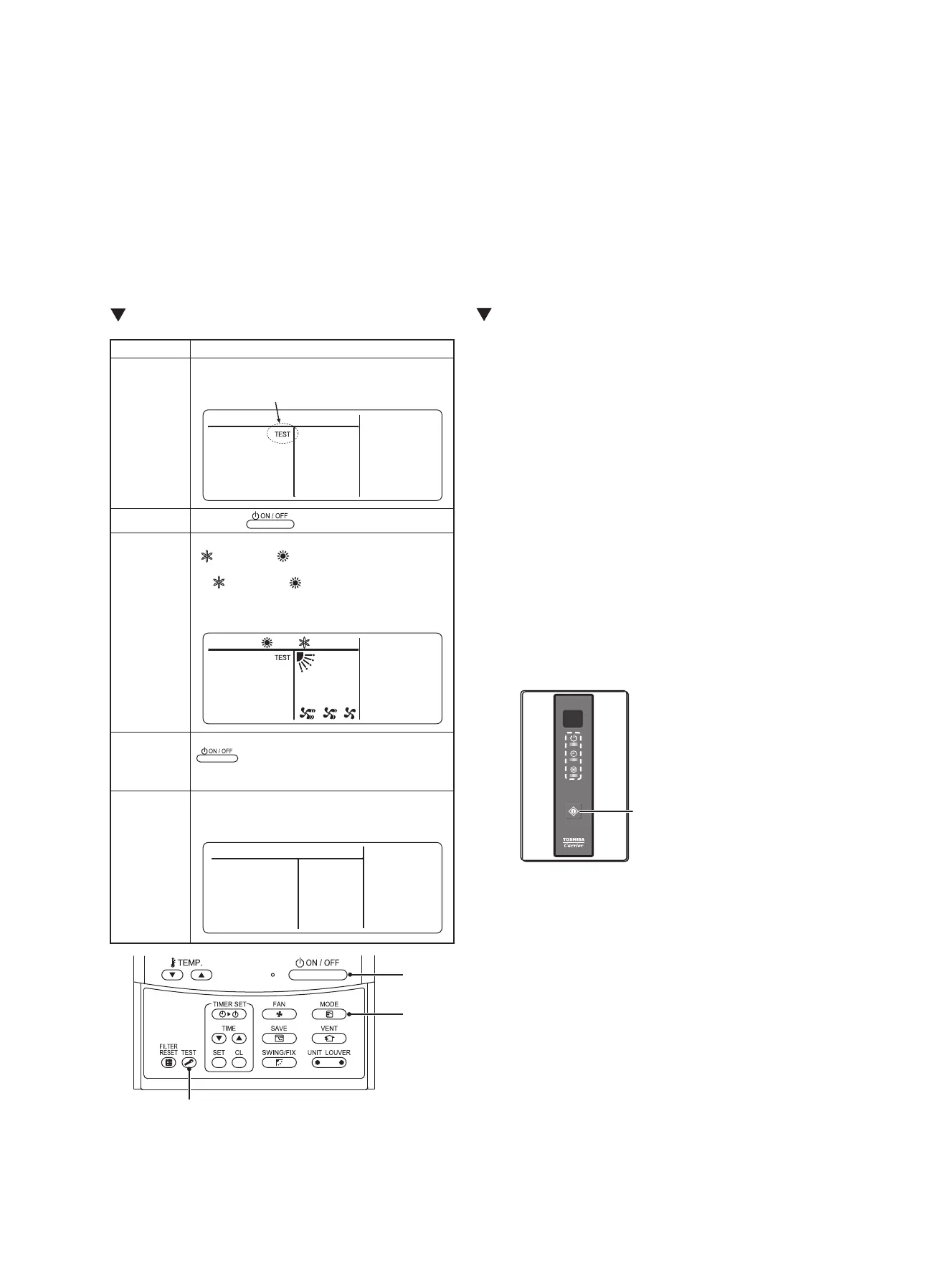 Wireless remote control: Refer to the items below in “Test operation” of the wireless remote control.