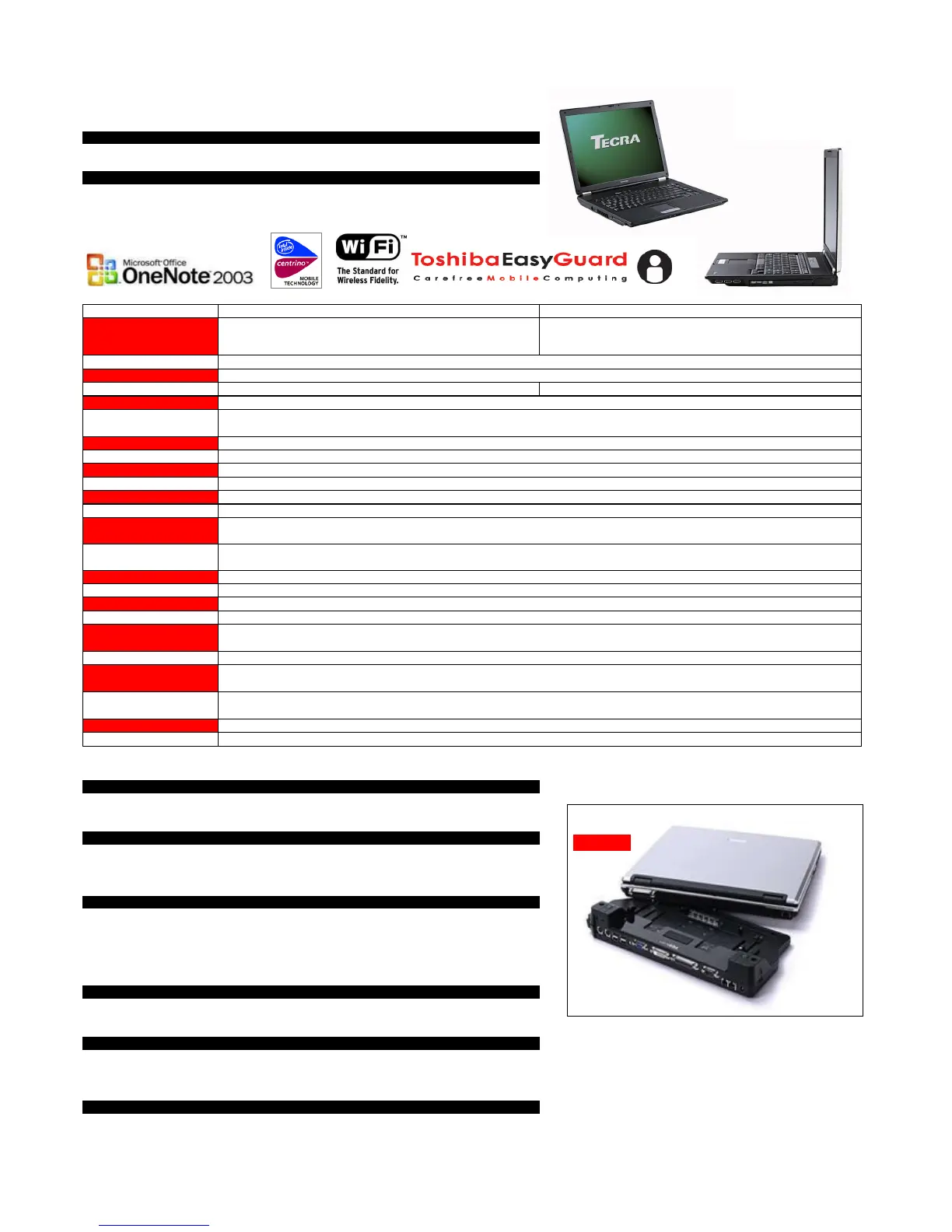 Common docking and options with other Toshiba notebooks, BIOS password, HDD password on request, keyboard lock, main hard disk (by screw), main memory (by screw),