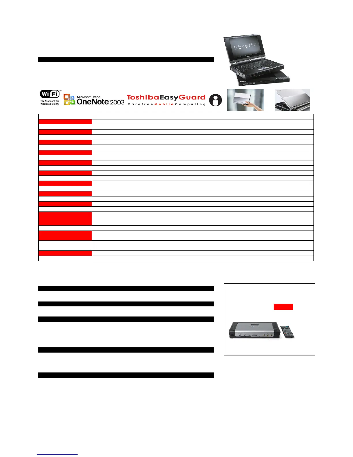 Rewind, Play/Pause, Stop, Forward) via libretto DVD Dock, Express Media Player for instant-on entertainment via libretto DVD Dock
