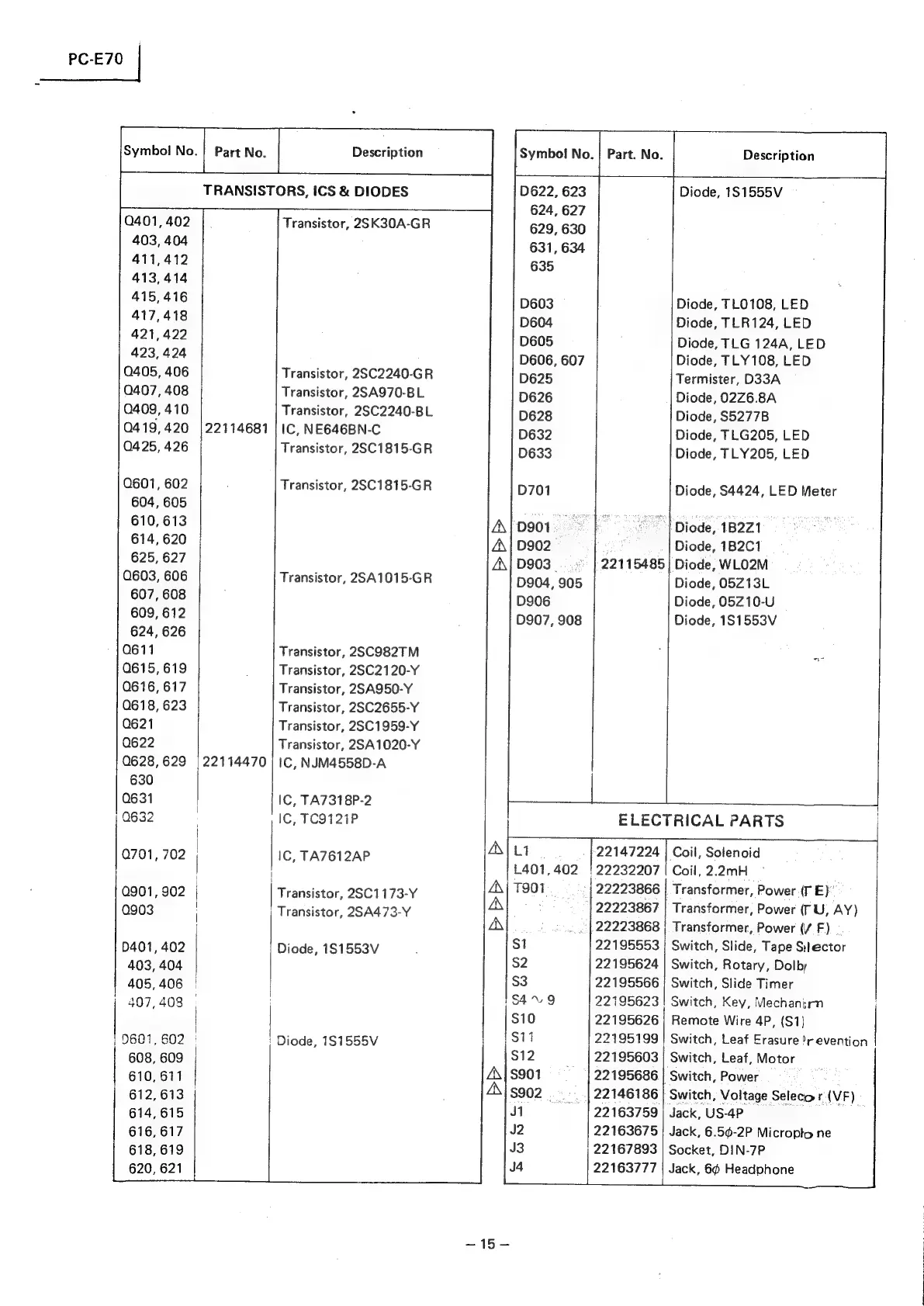 Toshiba PC-E70 - Electrical Parts
