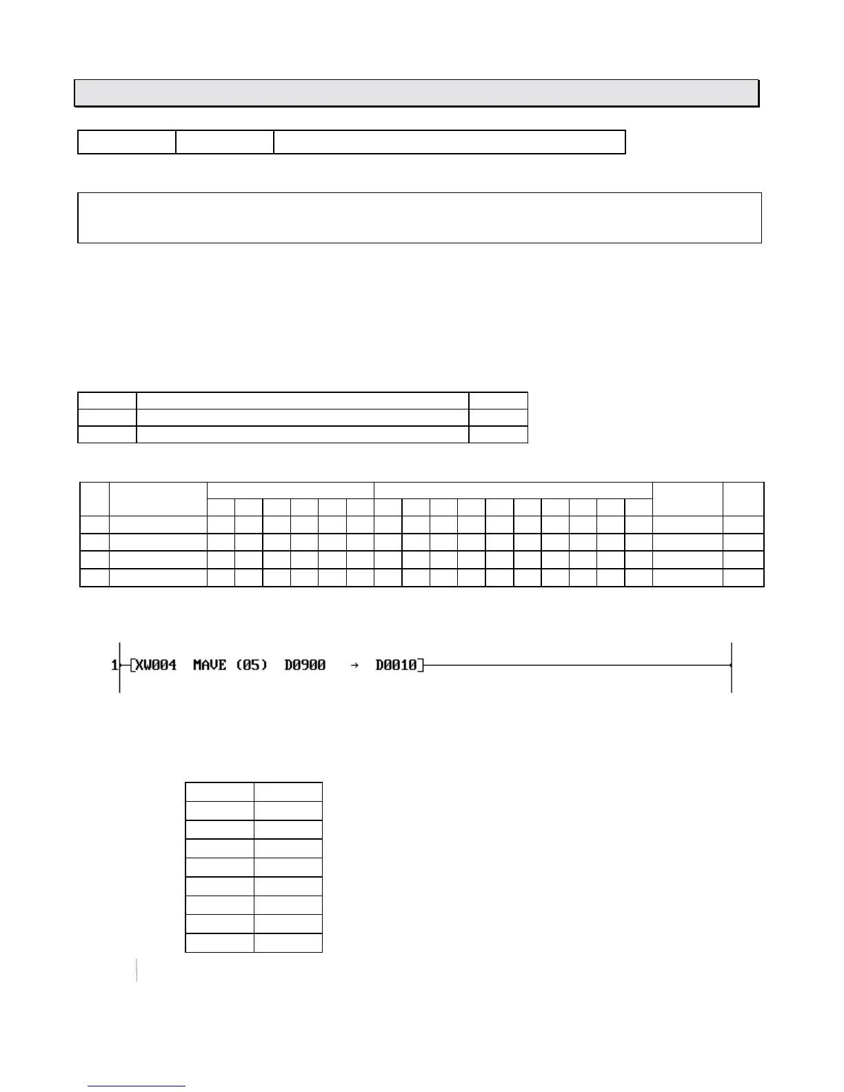 The latest 5 scan’s data of XW04 is stored in D0900 to D0904 (5 registers), and the average