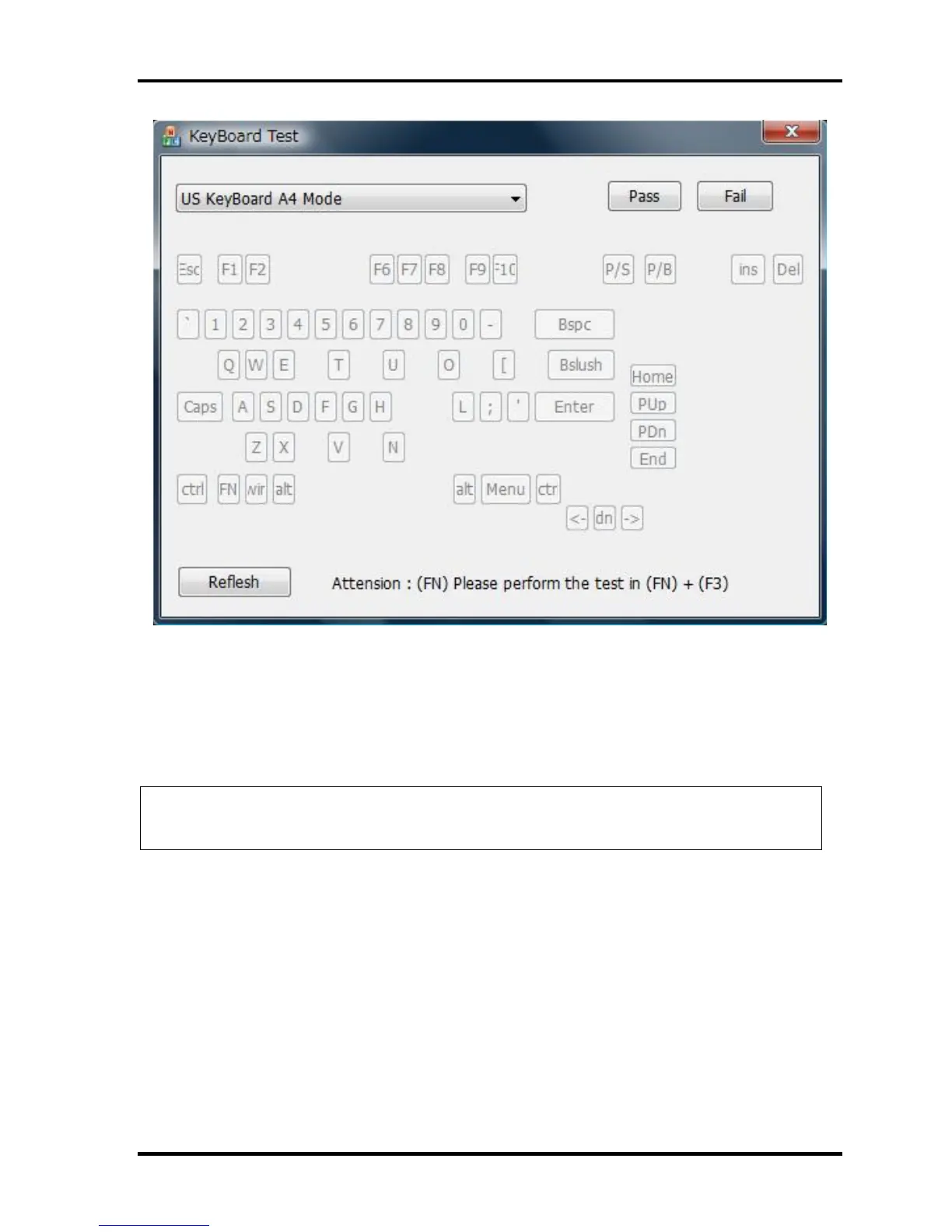 2) When redoing a keyboard test, the "Refresh" button arranged at the screen lower left is