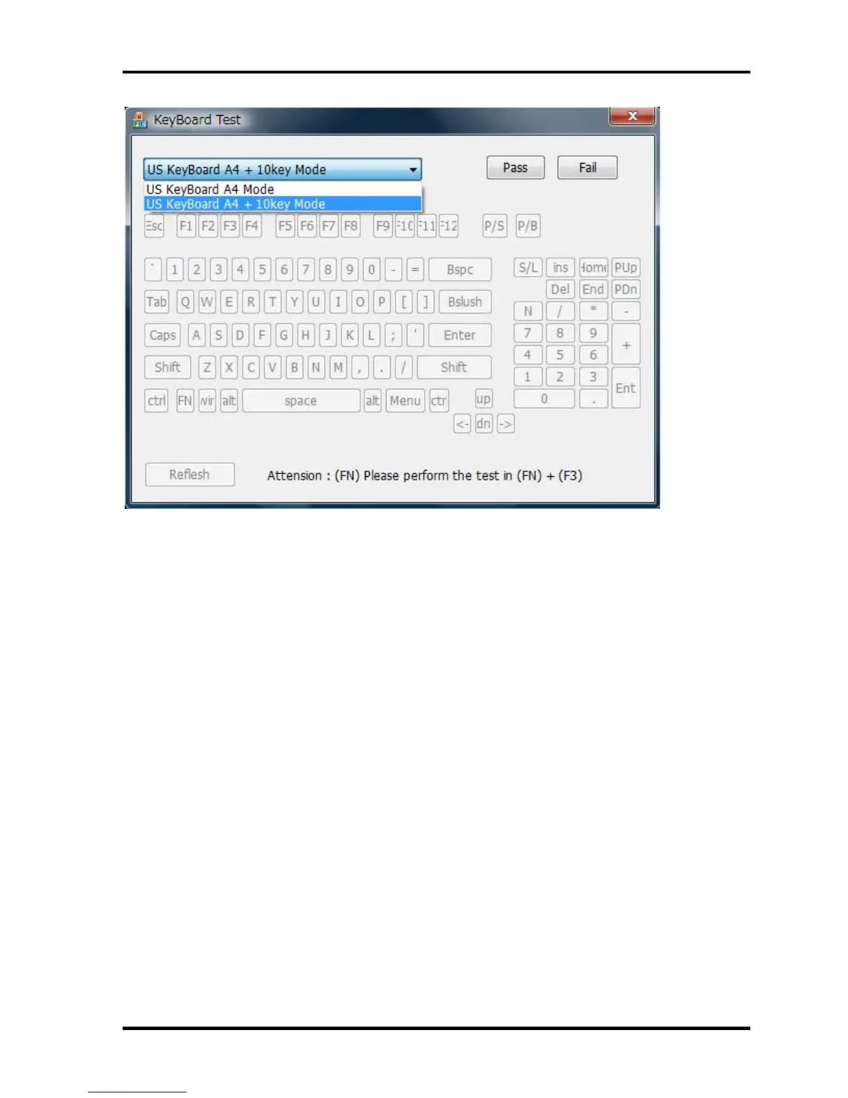 The keyboard which can be tested is two kinds, "US Keyboard A4 Mode" and "US Keyboard