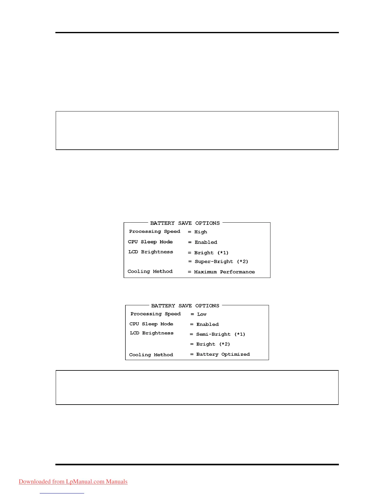 This option is used to select Full Power, Low Power or User Setting of the battery