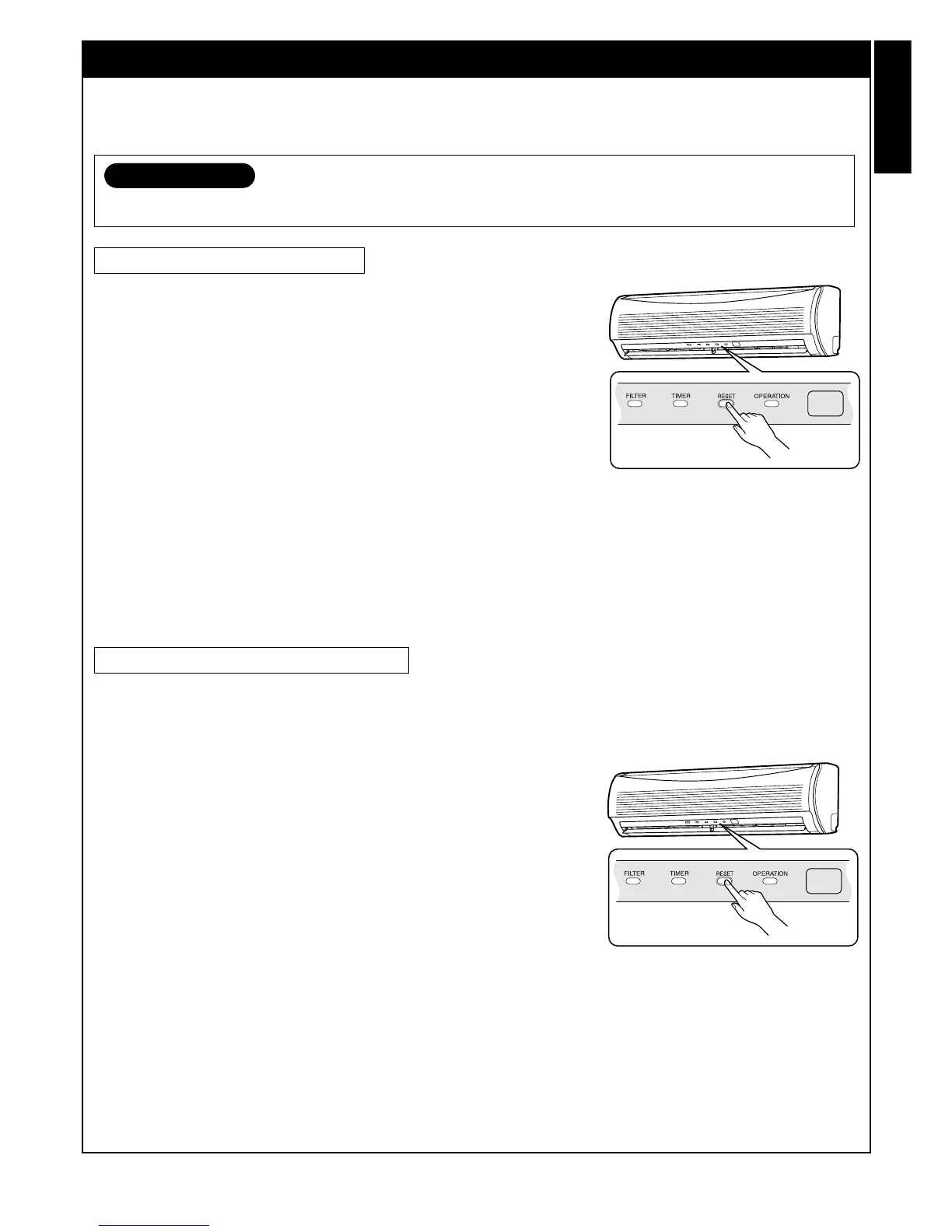 If the air conditioner is not required to run at this time, push the RESET button