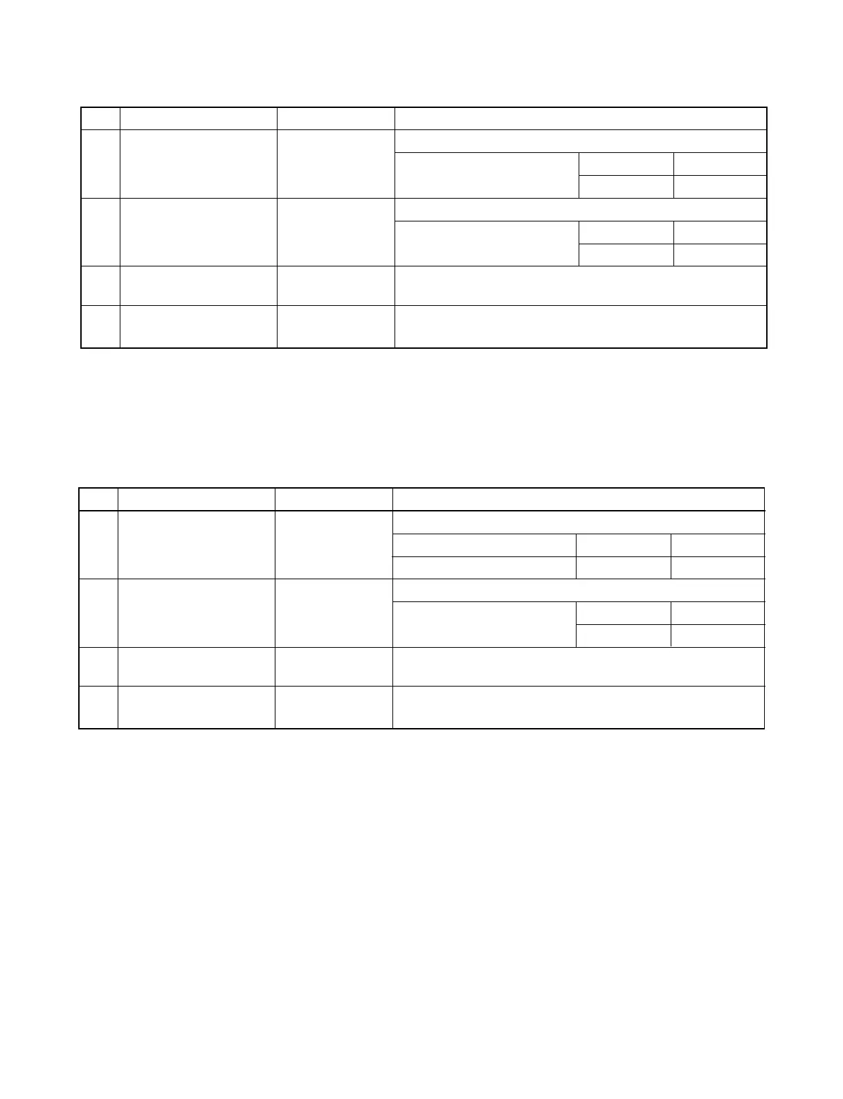 No. Parts name Type Specifications