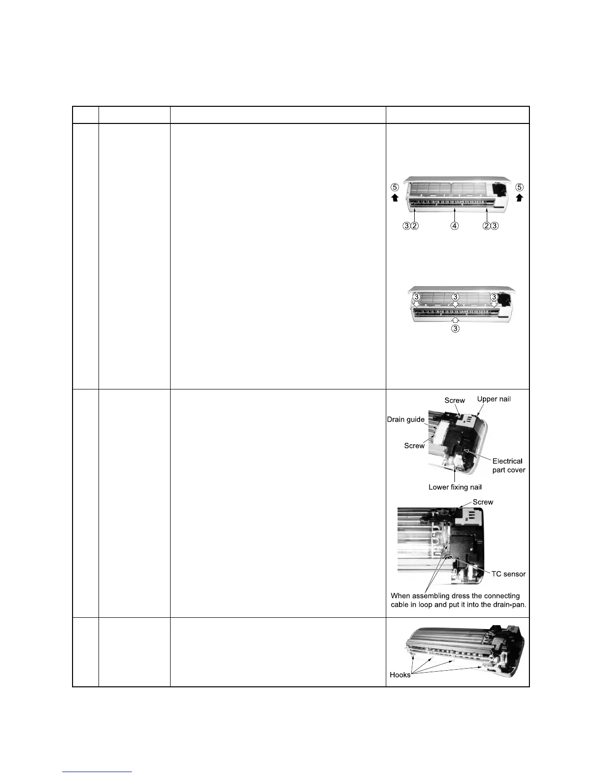 2) Remove the drain-pan by pressing the four hooks