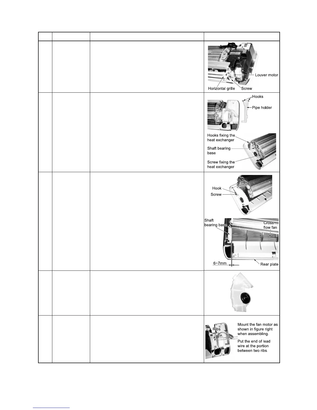 4) Remove the fan motor after pulling the cross flow fan
