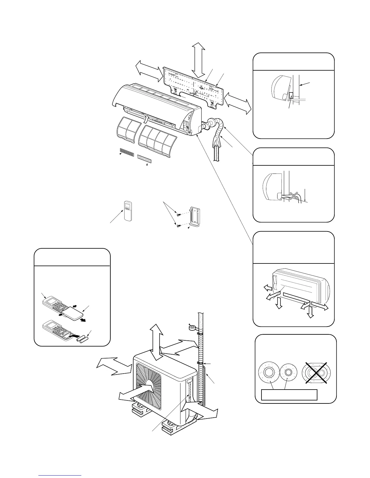 the indoor unit and wall,
