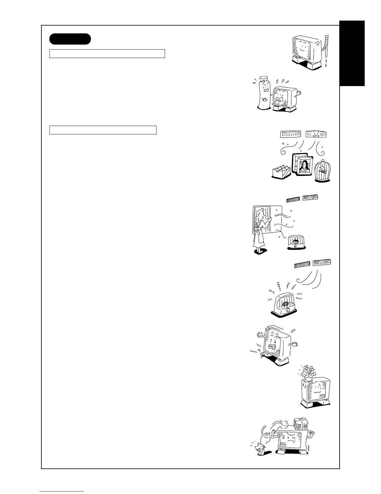 • Don’t place any combustion appliance in a place where it is directly