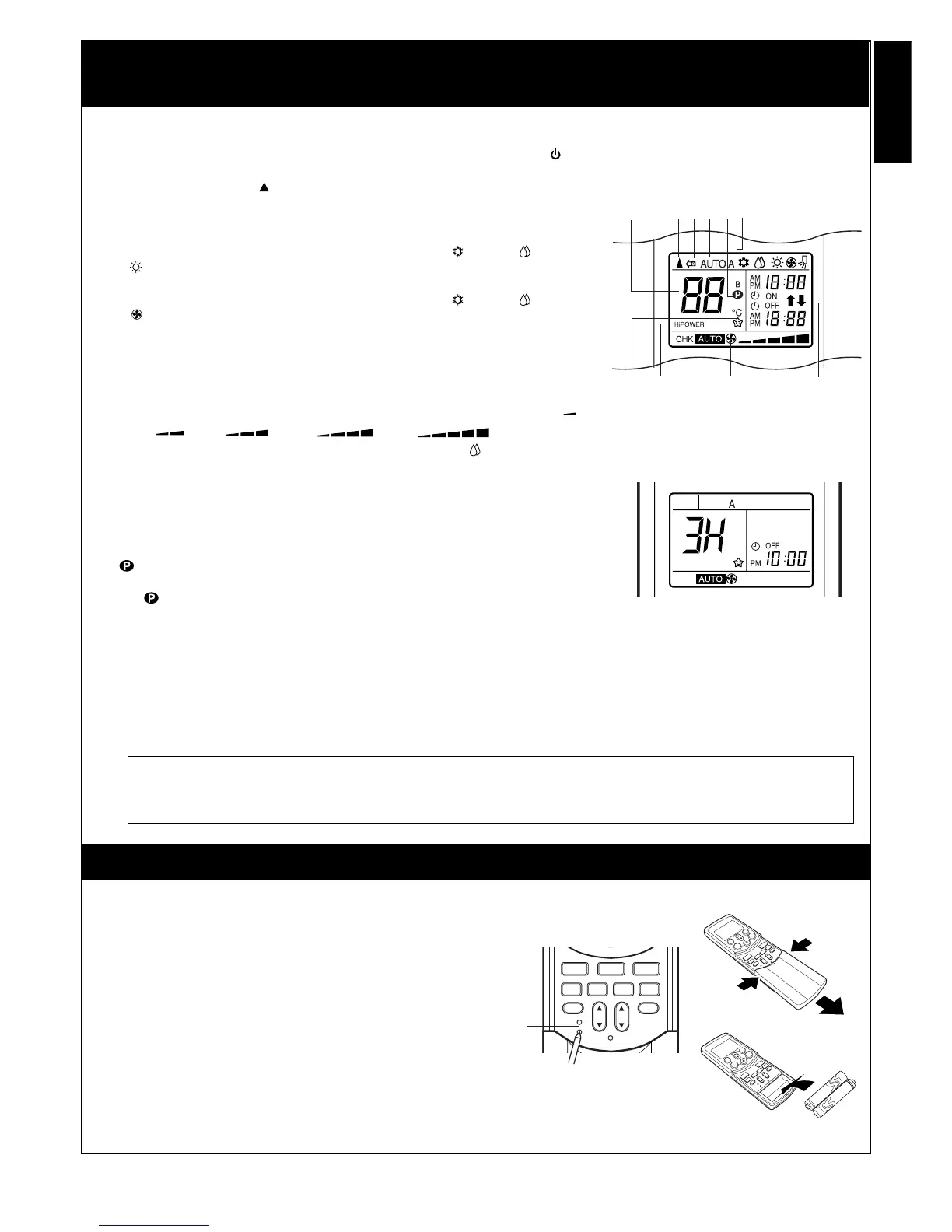 This transmission mark ( ) indicates when the remote control transmits signals to the indoor unit.