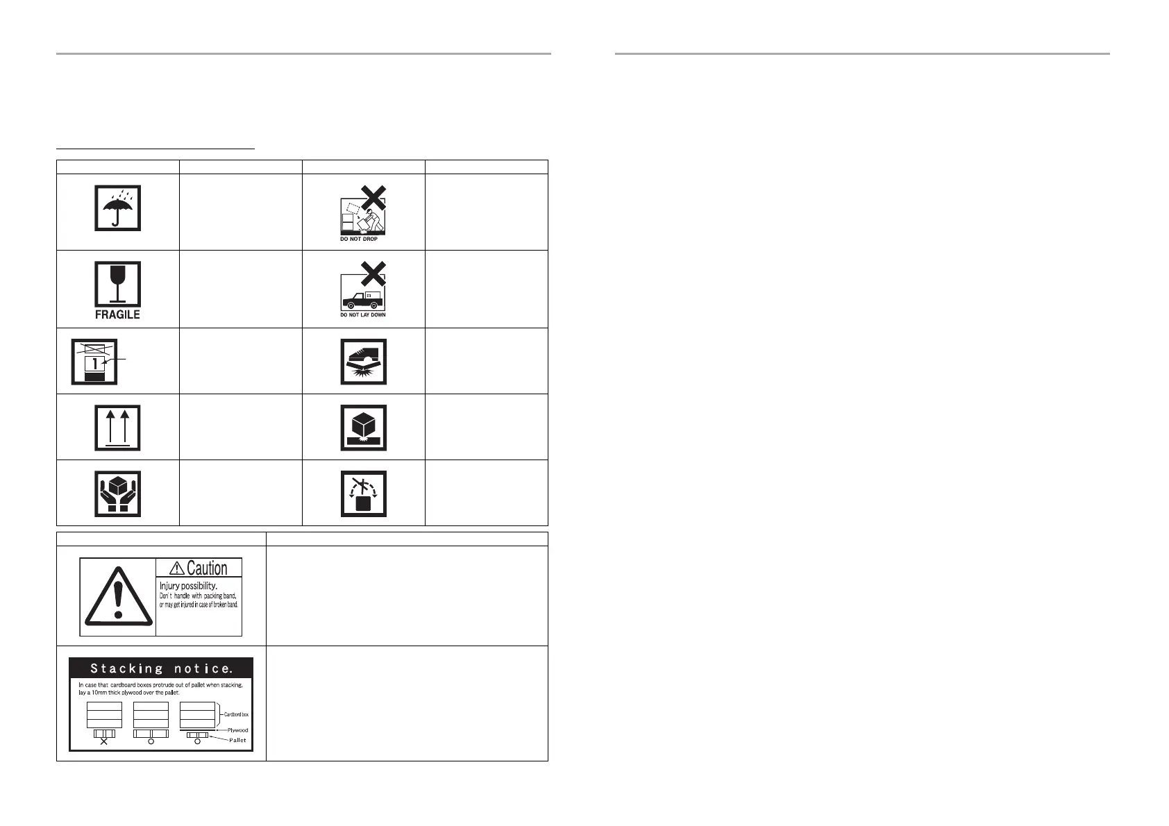 Don’t handle with packing band, or may get injured in case of broken band.