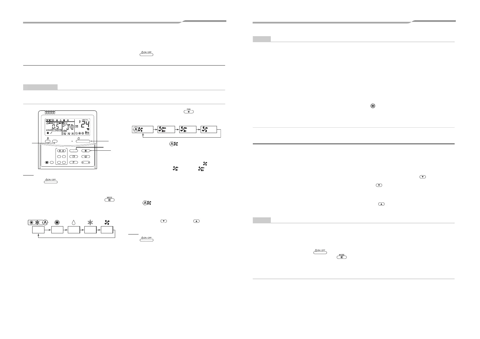 • When the room temperature reaches the set temperature, the outdoor unit stops and the indoor unit fan runs at extremely