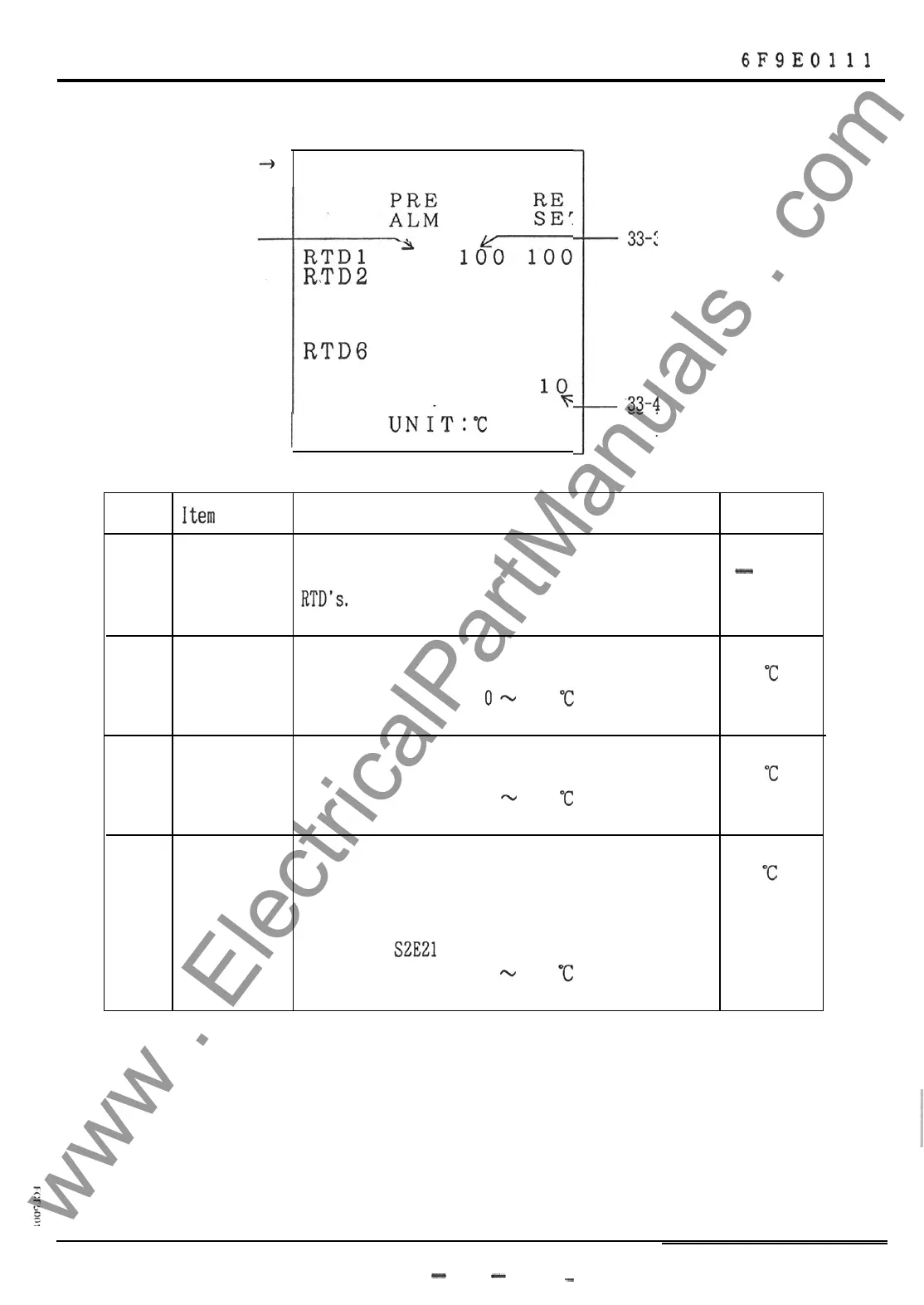 Alarm level Sets alarm detection temperature for each RTD.