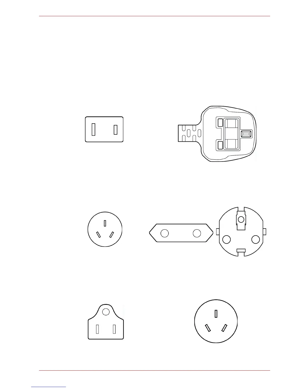 The following illustrations show the plug shapes for USA, Australia, Can-