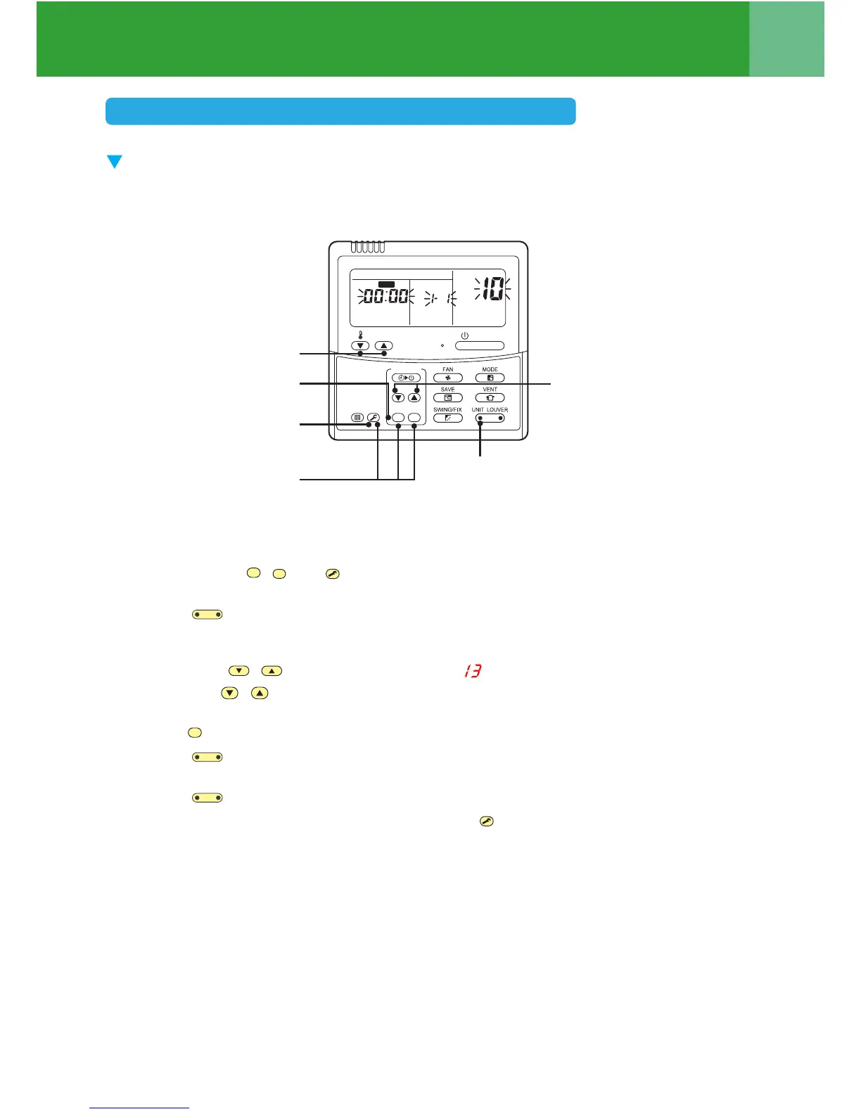 button (left side of the button) repeatedly to select another indoor UNIT No. to change.