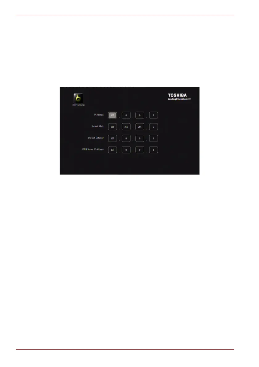 Input the fixed IP address, subnet masks, and default gateway, etc. using