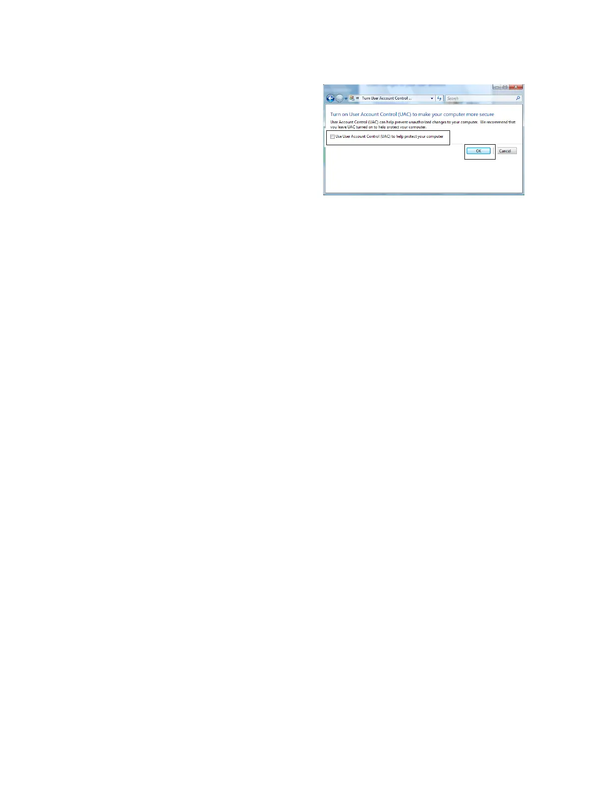 Figure 3.15 User Account Control Setting (Windows Vista/Windows Server 2008)