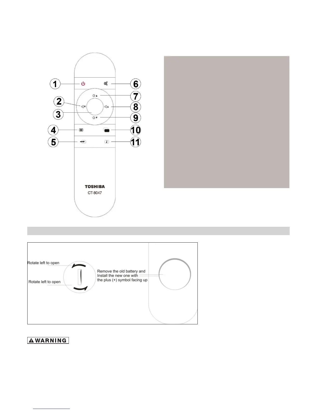 Toshiba TD-E401 - Remote Control Operation; Battery Installation and Range