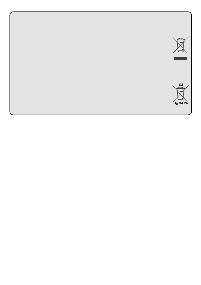 The crossed out wheeIed dust bin symbol indicates that products must be collected and disposed of separately
