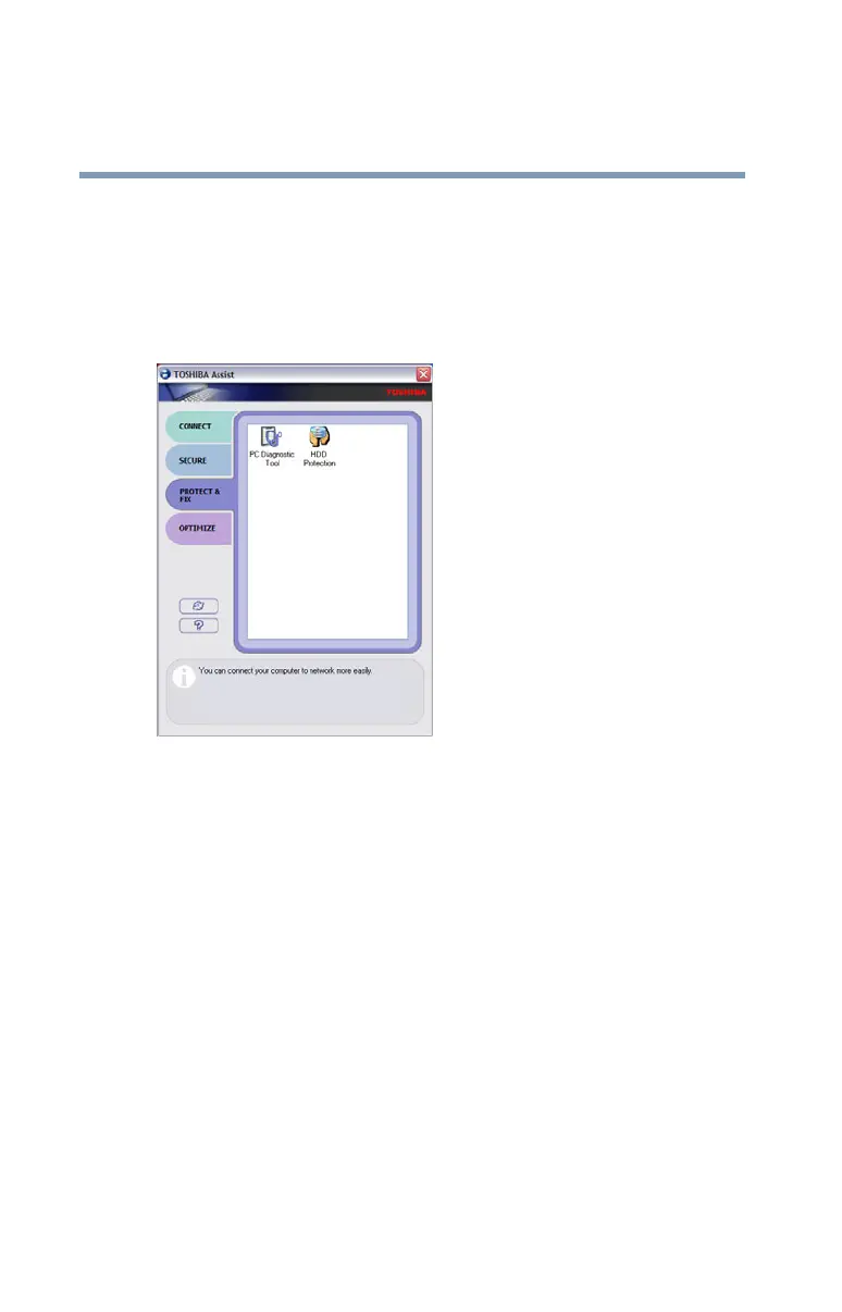 (Sample Image) Toshiba Assist window – Protect & Fix tab
