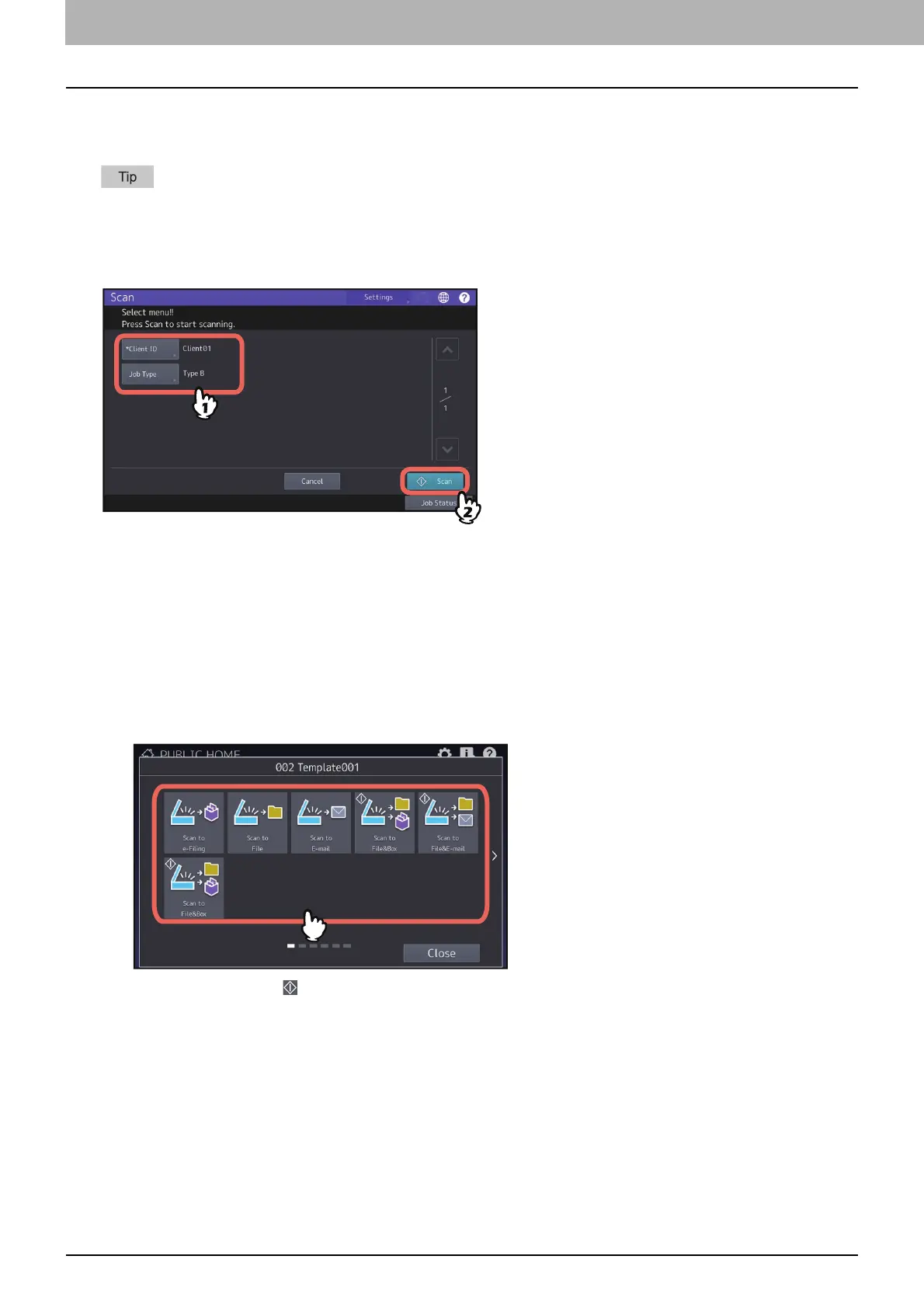 When you use a meta scan template, select a template, then enter required information and press [Scan].