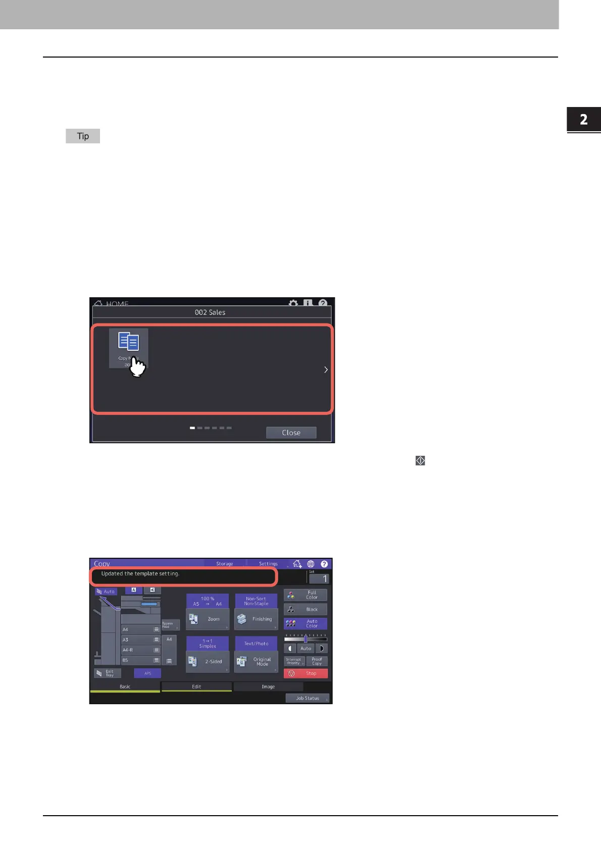 Toshiba Template e-STUDIO5525AC - Recalling Templates; Using Templates