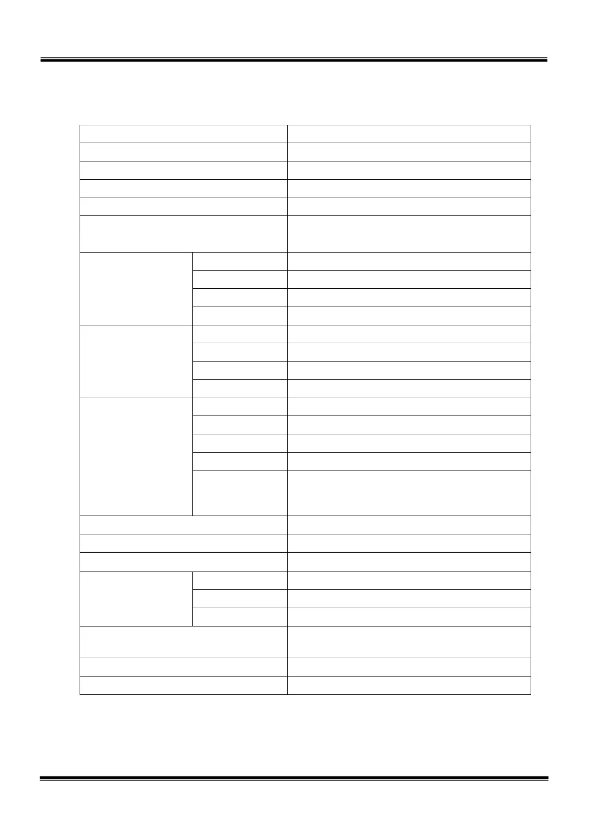 1.3 Specifications Table