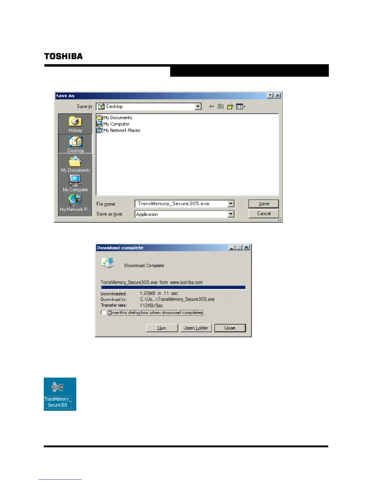 8) On the desktop, the downloaded software named “TransMemory_Secure305.exe” appears