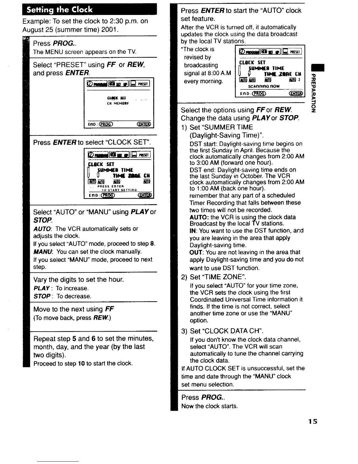 Toshiba W-512 - Setting the Clock