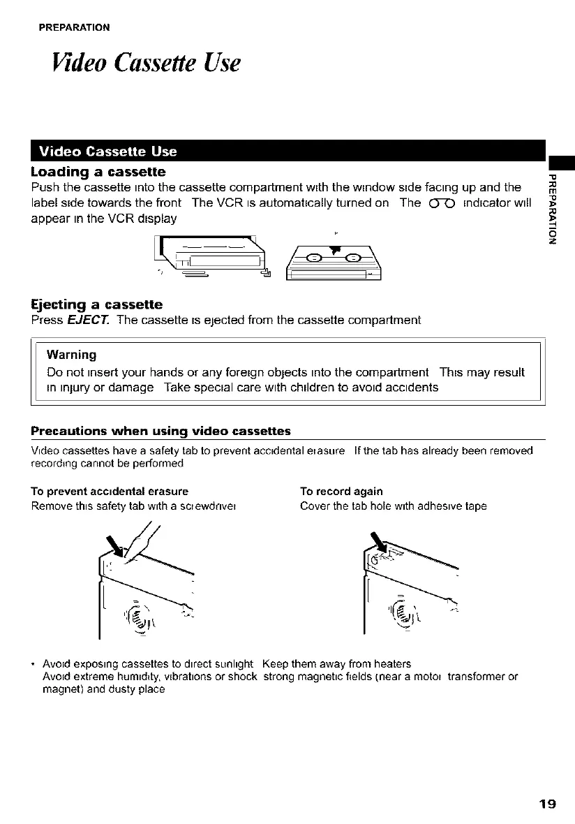 • AvoEd exposing cassettes to dtrect sunhght Keep them away from heaters
