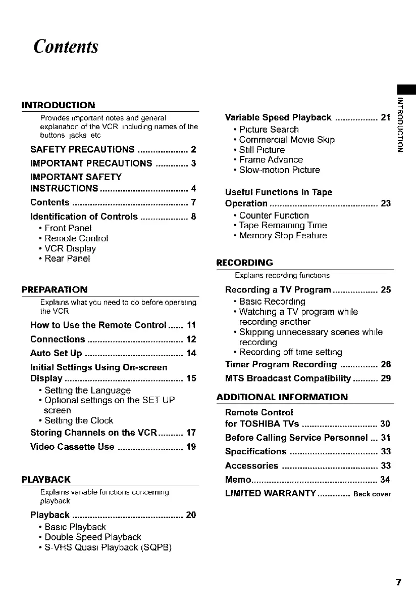 Video Cassette Use .......................... 19