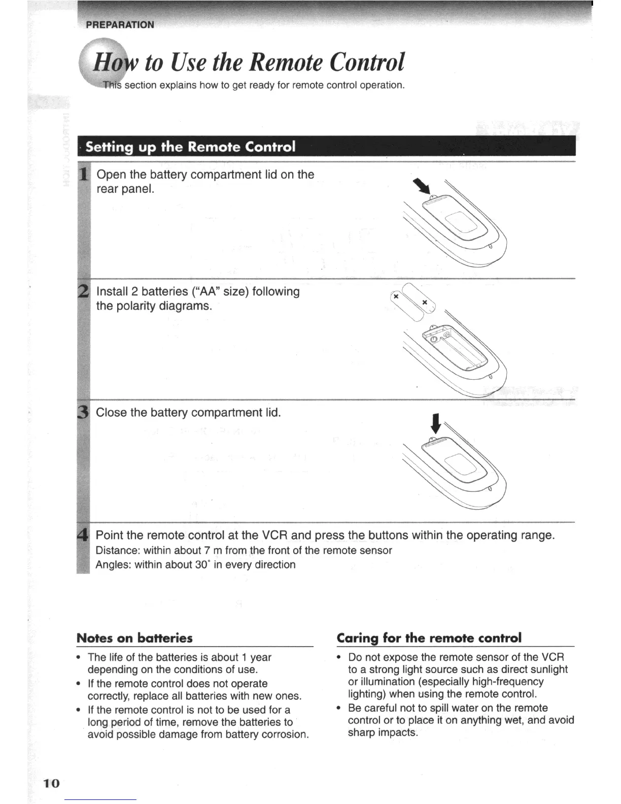 Toshiba W-603 - Preparation; How to Use the Remote Control; Setting up the Remote Control
