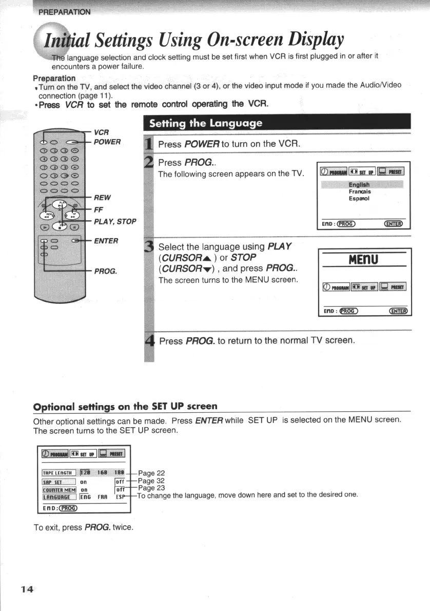 Toshiba W607 - Initial Settings Using On-Screen Display; Setting the Language; Optional Settings on the SET up Screen