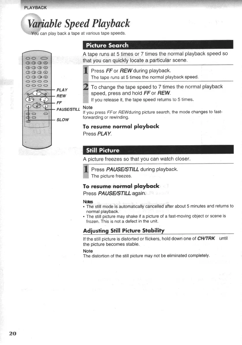 Toshiba W607 - Variable Speed Playback; Picture Search; Still Picture; Adjusting Still Picture Stability